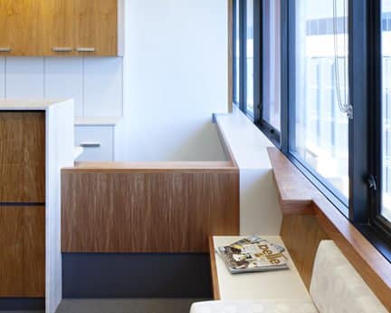 The approach taken was to utilise natural materials and neutral colours in order to create a space which is comfortable and will stand the test of time and changing trends. Hand built timber joinery is a unique feature of the office, giving it a boutique, personal feel, which is in stark contrast to the clinical, large scale atmosphere of the hospital overall.