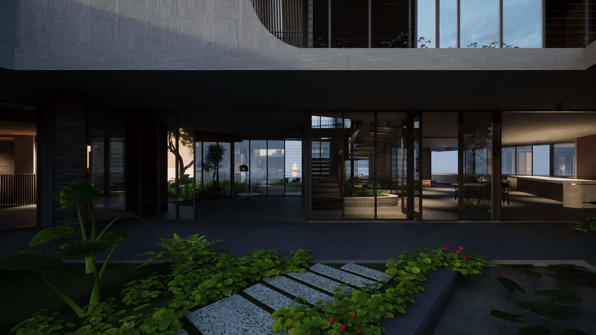 Robust materials—concrete and brick—ground the structure, giving it a sense of permanence and resilience against the elements. These materials, both raw and refined, respond effortlessly to the coastal environment, ensuring the home not only belongs to the landscape but is shaped by it.