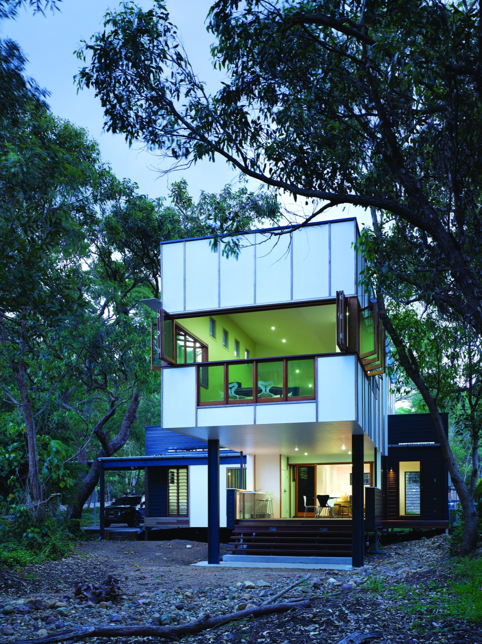 Consideration of planning and siting albeit important, it was the 3rd element that of construction methodology and materiality that grounded the concept of being low maintenance and affordable from the structural concept of minimal contact to the mix of materials reminiscent of beach houses.
