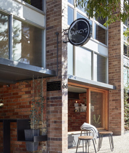 The open plan staff area towards the rear of the plan continues to utilise the muted finishes palette and was located to best access the balcony space and natural light. The interior planning uses large layout joinery with storage below as to divide the space while allowing the staff to use it collaboratively. The space affords spatial division with softness by using a floor to ceiling sheer curtain element to close off the space as required.